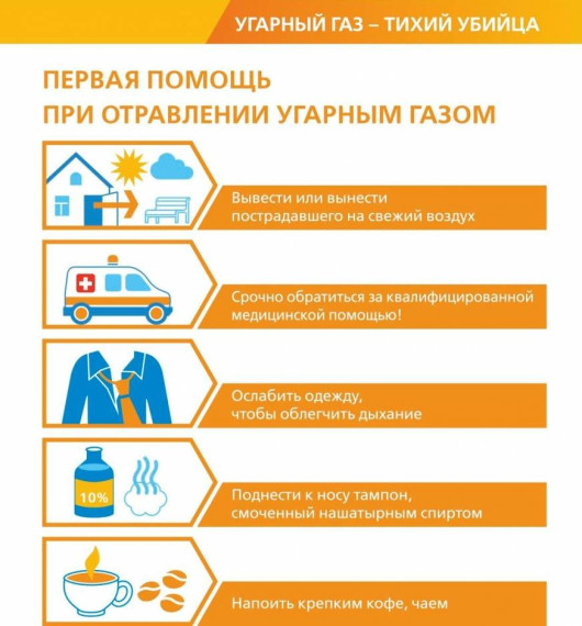 Угарный газ (окись углерода СО) — продукт неполного сгорания органических веществ, высокотоксичный газ без цвета, часто имеющий запах гари. Приводит к острому кислородному голоданию. Памятка «Первая помощь при отравлении угарным газом (окись углерода СО)».